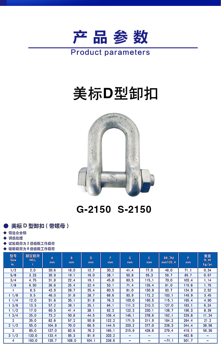 產(chǎn)品中心 當(dāng)前位置:首頁產(chǎn)品中心—美標(biāo)D型卸扣(G-2150 S-2150)